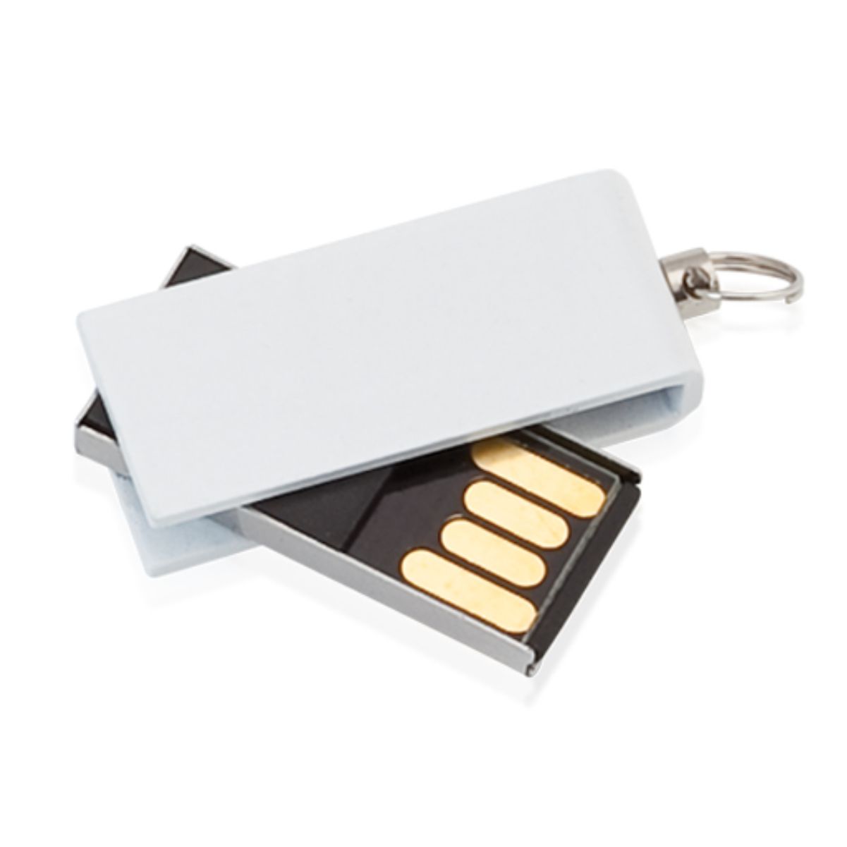 Mini memoria USB Publicitaria de 8GB de capacidad, con mecanismo giratorio y acabado en aluminio brillante.