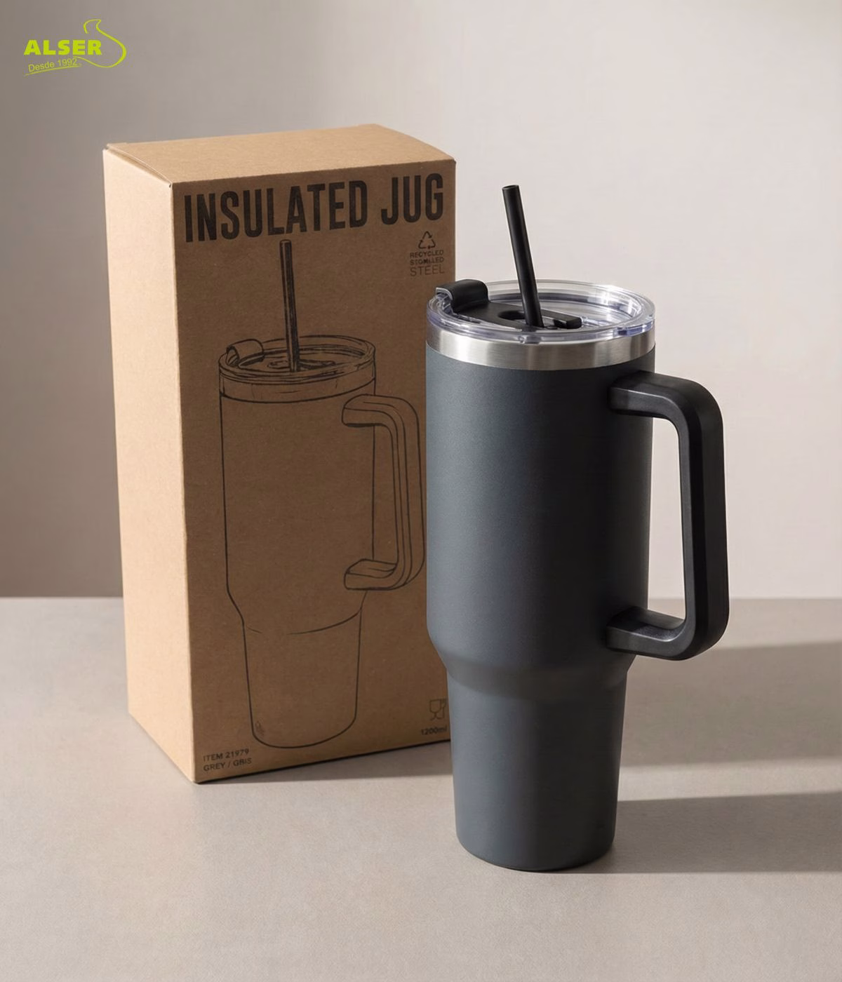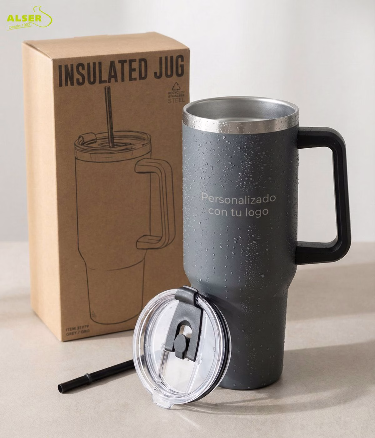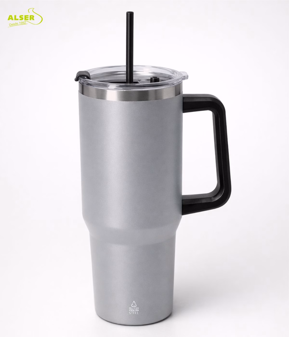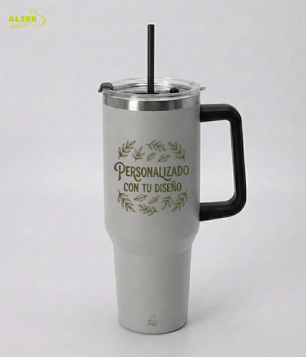 Hay productos que vienen y van, y luego están los que se quedan en la mesa, en el coche, en el gimnasio y hasta en la foto del escritorio. El vaso con pajita personalizado juega en esta liga. Con sus 1,2 litros de capacidad, este vaso estilo Stanley (sí, el famoso vaso 40 oz del que todo el mundo habla) está pensado para beber más agua sin darte cuenta… y para que tu marca esté siempre a la vista.