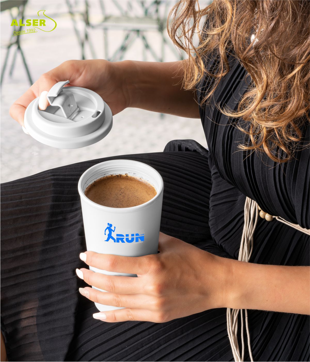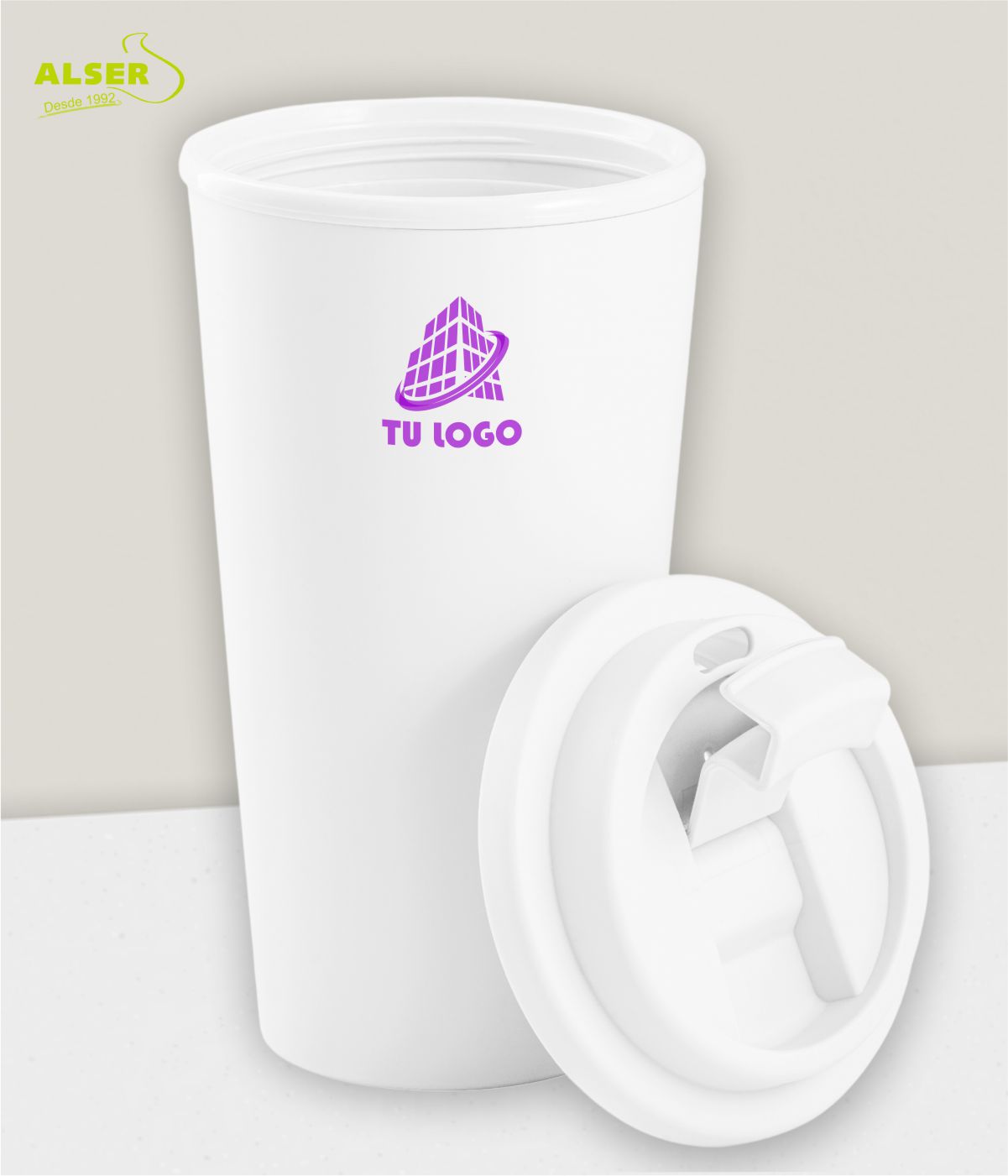 Porque mantiene el café caliente durante más tiempo y el agua fría en su punto. Porque su tapa de rosca con apertura flip-top evita sustos y derrames. Porque su diseño moderno lo hace destacar en cualquier entorno. Porque es resistente, reutilizable y fácil de llevar a todas partes. Y porque puedes personalizarlo con tu logo y hacer que tu marca viaje con cada sorbo.
