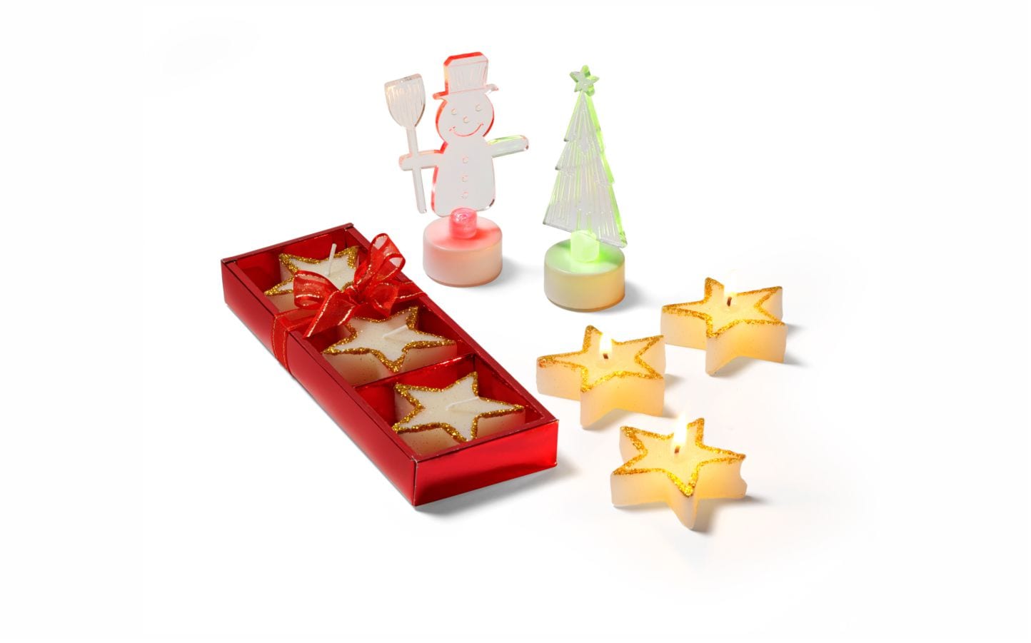 Este set incluye 3 velas con forma de estrella, decoradas con purpurina dorada que atrapa la luz como si fuera magia.. Van presentadas en una cajita individual con lazo rojo, un envoltorio que grita «soy un regalo bonito» incluso antes de abrirse. Y lo mejor: puedes personalizar la caja con tu diseño, una frase navideña o el branding completo de tu empresa. Detallazo asegurado.