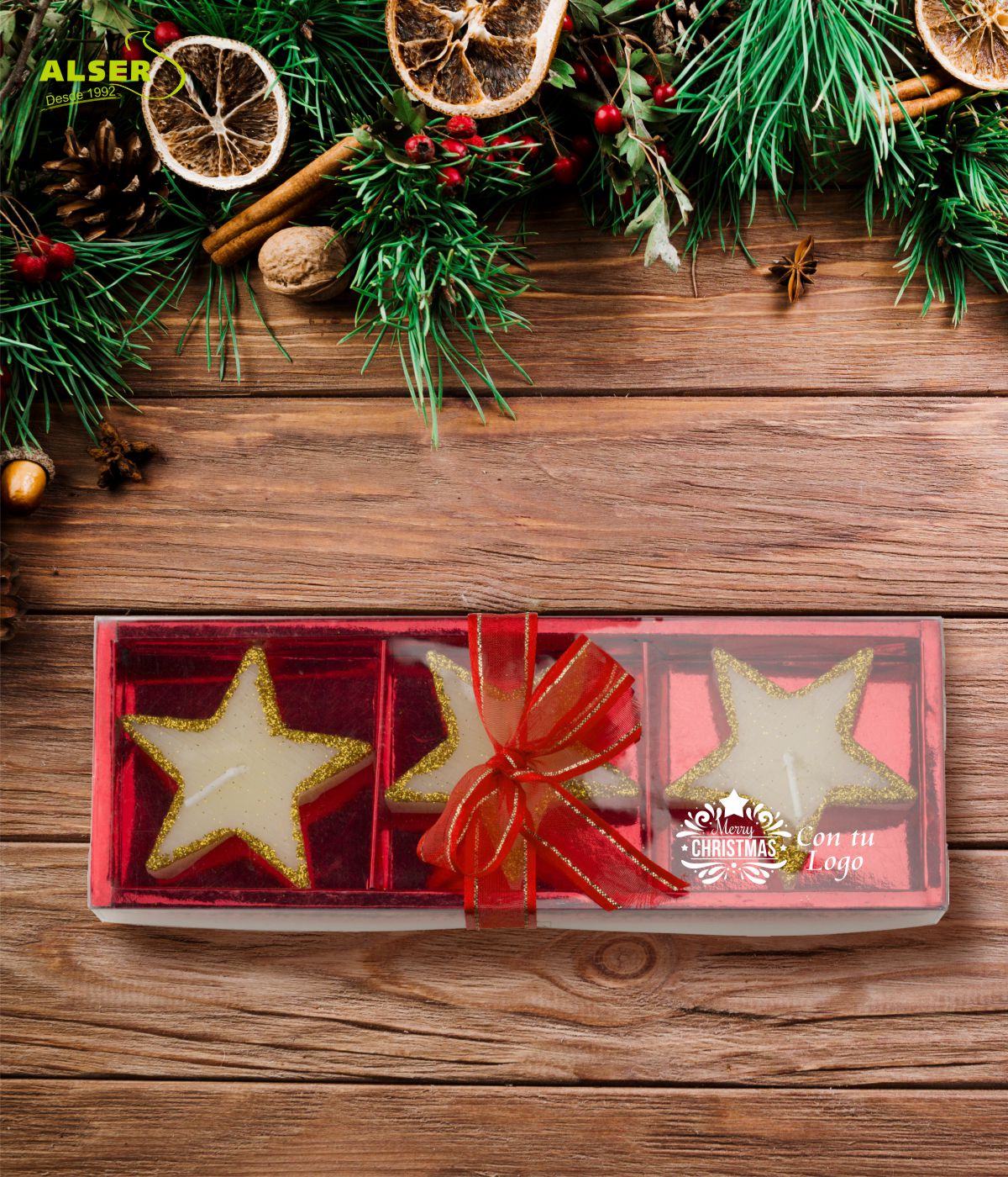 Cuando necesitas un regalo que sea visualmente navideño, que huela a acogedor y que se adapte a todo tipo de empresas y sectores, este set de velas en forma de estrella lo clava. Funciona igual de bien en promociones estacionales, acciones de fidelización o detalles que buscan reforzar la marca sin caer en lo típico.