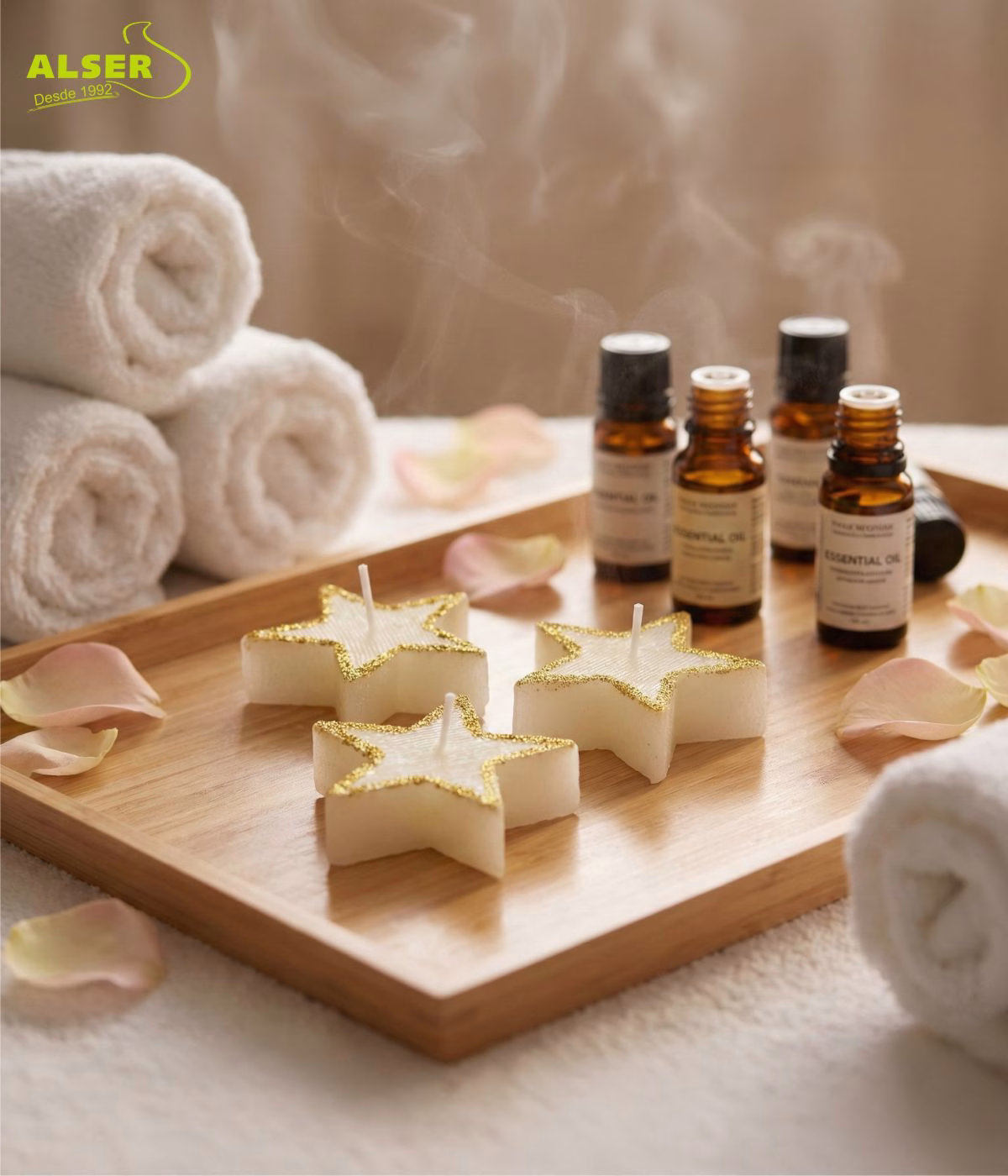 Cada vela está hecha de cera y pesa lo justo para transmitir calidad. El conjunto (19,2 × 6,6 × 2,0 cm y 0,72 kg) llega listo para entregar, sin complicaciones. Puedes personalizarlo con etiqueta impresa a todo color o adhesivo en la caja, y en Alser te enviamos un fotomontaje gratis con tu logo para que lo veas antes de imprimir. Así de fácil. Así de seguro.